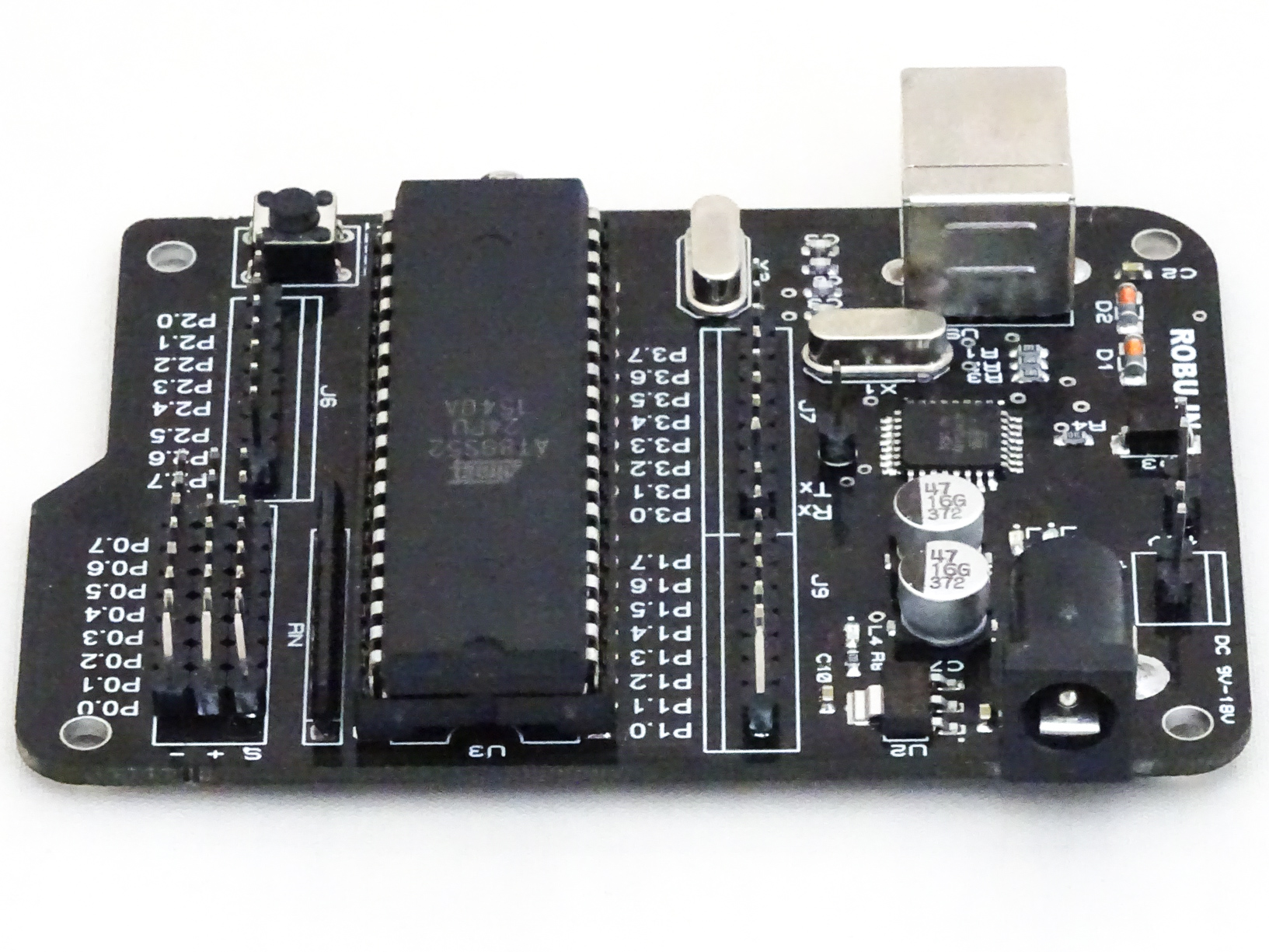 With SmartElex’s Aryabhatta 8051 Development Board AT89S52 – on-board USB Programmer you can develop and prototype 40 pins 89S52 and 89s51 microcontrollers. The onboard programmer allows easy connection with PC using USB type B cable for Programming. The Operating Voltage is 9V to 15V DC.