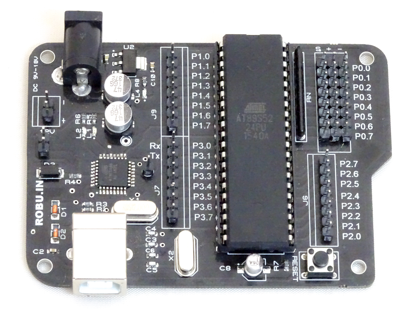 If you are learning microcontrollers or want to quickly develop an embedded project based on standard 8051 core, then this board will help you quick start with the application by giving you access to everything required to run the AT89S52 microcontroller. With this board, you can develop and prototype with any of 8051 40 pin microcontrollers.
