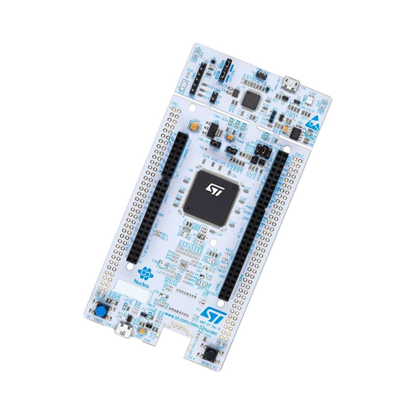 The STM32 Nucleo-144 board provides an affordable and flexible way for users to try out new concepts and build prototypes with the STM32 microcontroller, choosing from the various combinations of performance, power consumption and features The ST Zio connector, which is an extension of Arduino ™ Uno V3, provides access to more peripherals and ST morpho headers provide an easy mean of expanding the functionality of the Nucleo open development platform with a wide choice of specialized shields. The STM32 Nucleo-144 board does not require any separate probe. This board integrates the ST-LINK/V2-1 debugger / programmer and comes with the STM32 comprehensive software HAL library, together with various packaged software examples.