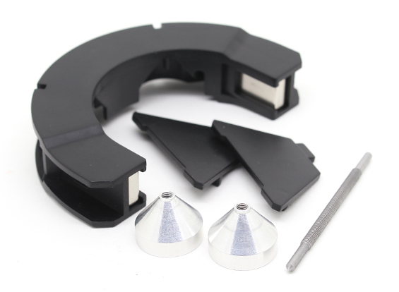 A custom machined cone with a 4mm collar allows for static centering and a recessed flat sided cone for dynamic aligning of “direct bolt” or “T style” props, making most propellers no problem for this balancer. The high power rare earth magnets can handle up to most 14inch propellers with ease.